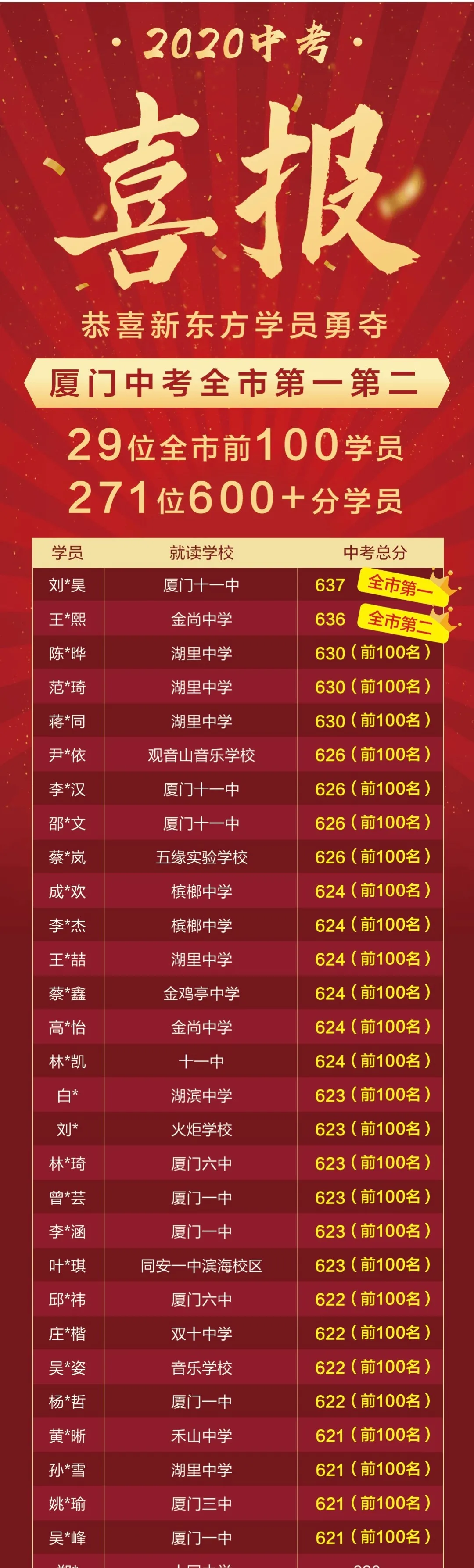 --劉*昊 2020廈門中考637 市裸分狀元 廈門十一中/新東方凌云班學(xué)員