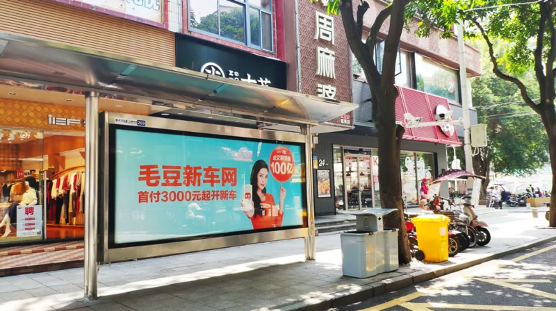 年輕一代有購車需求的受眾們,每日都能在城市出行中必定要長時間停靠的候車亭中,通過大面積的畫面刺激及重復(fù)接觸,將毛豆新車網(wǎng)品牌植入人心。