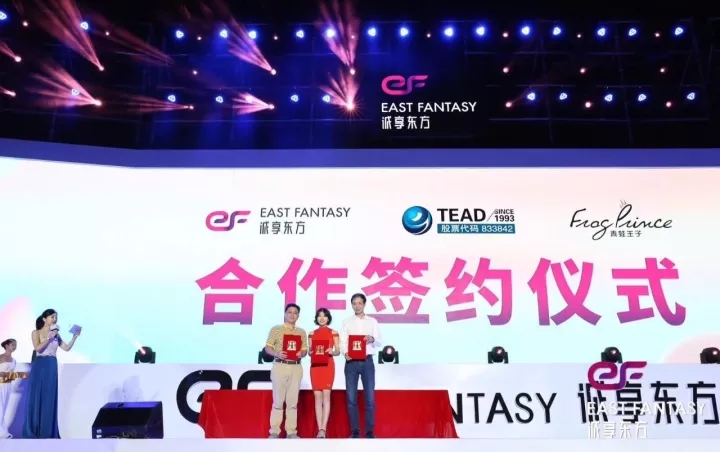 2017年10月21日,在誠享東方掛牌慶典晚會上,天藝傳媒攜手知名美妝移動電商——誠享東方,及國內(nèi)領(lǐng)先日化企業(yè)——青蛙王子在廈門音樂島正式舉行簽約儀式。三方將在未來共同推出以“阿巴兔”為品牌形象的兒童護(hù)理系列產(chǎn)品。